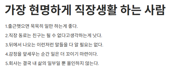 1.출근햇으면 묵묵히 일만 하는게 좋다.