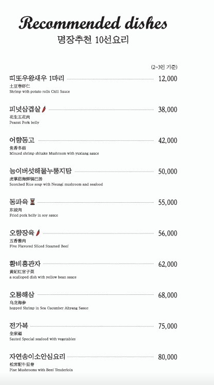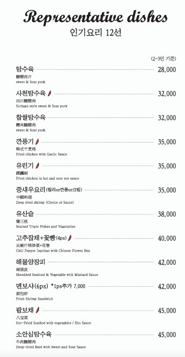 * 포장메뉴 "곱빼기"는 2,000원 추가입니다.