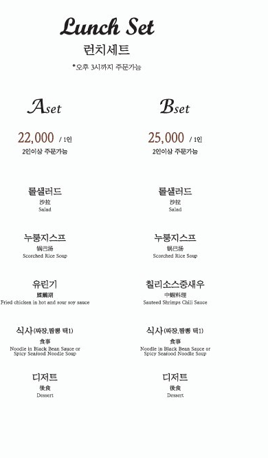 Lunch Set 런치세트 오후 3시까지 주문가능