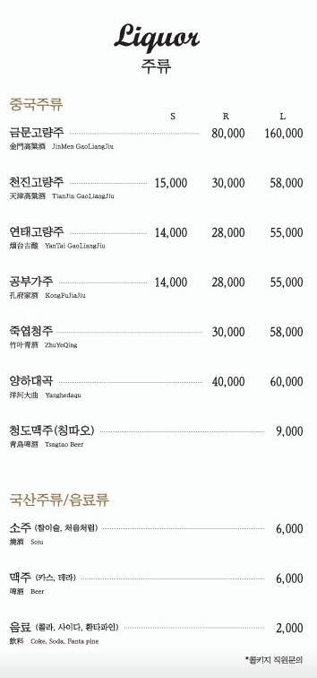 천진고량주 (TianJin GaoLiangJiu) 15,000 30,000 58,000