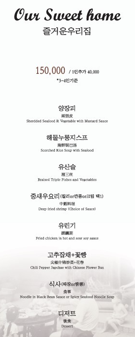 Our Sweet Home 즐거운 우리집 150,000원 (1인 추가 시 40,000원) 3~4인 기준