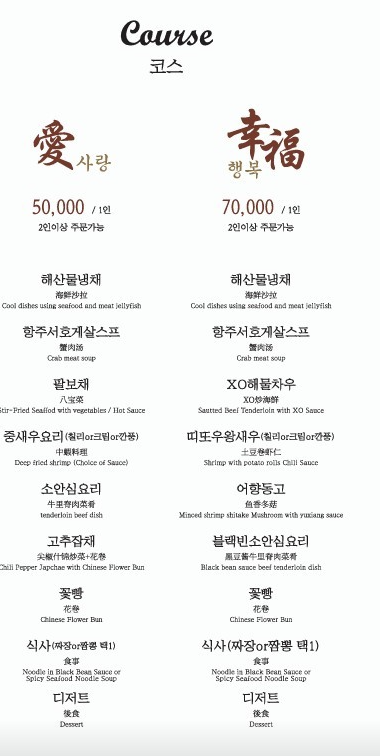 愛 사랑 코스 50,000원 / 1인 (2인 이상 주문 가능)