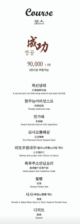 Course 코스 – 成功 (성공) 90,000원 / 1인 (2인 이상 주문 가능)