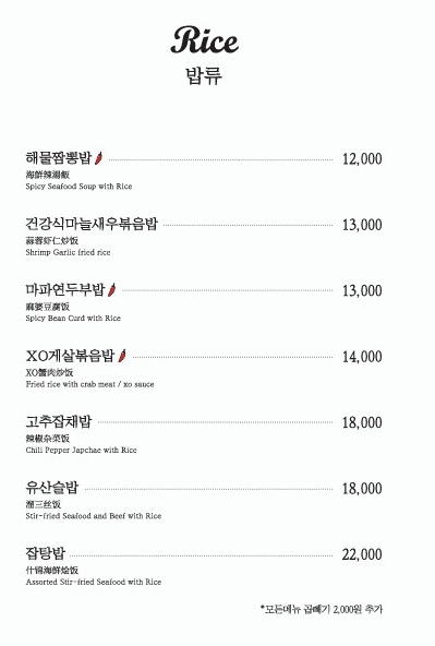 * 포장메뉴 "곱빼기"는 2,000원 추가입니다.