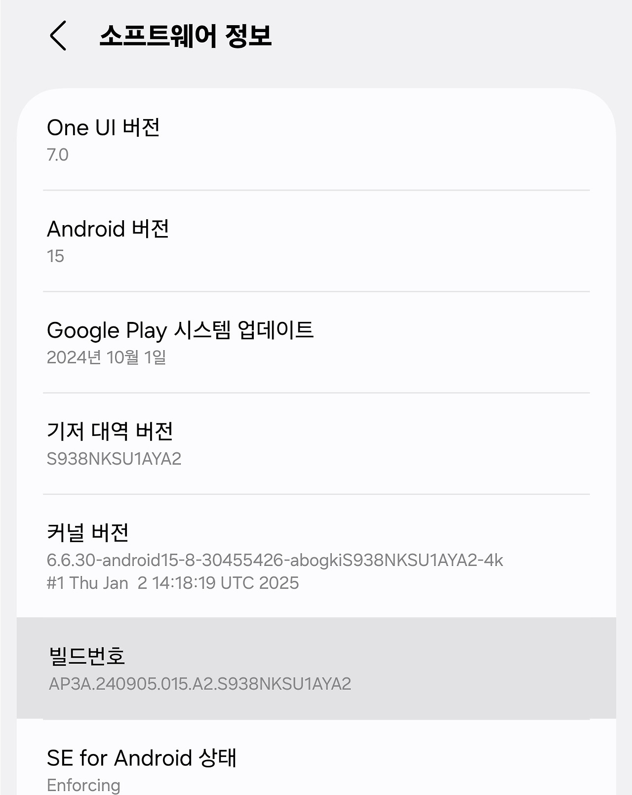 1. 설정 > 휴대전화 정보 > 소프트웨어 정보 로 들어가셔서 빌드번호를 빠르게 연타해주시면 됩니다. 그러면 경고문구와 함께 개발자 모드를 열어줍니다. (개발자옵션 활성화)