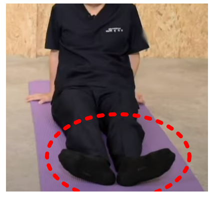 2. 엄지 발가락을 서로 붙이며, 괄약근에 힘을 줍니다. (5초 유지해야 합니다)