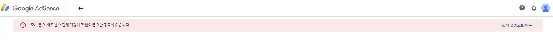 2. 조치 필요, 애드센스 결제 계정에 확인이 필요한 항목이 있습니다. 결제 설정으로 이동 클릭