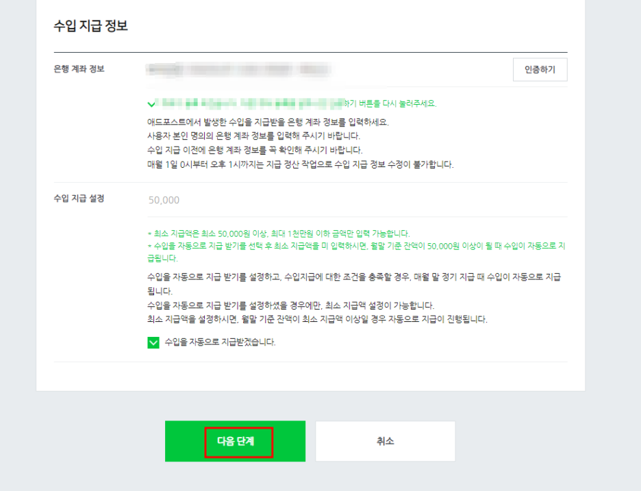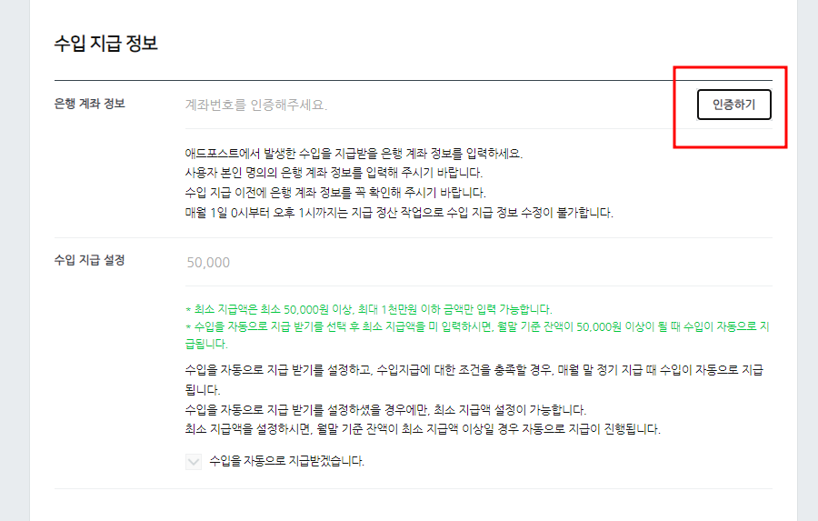 - 광고 수익이 발생하면 등록한 계좌로 지급됩니다.