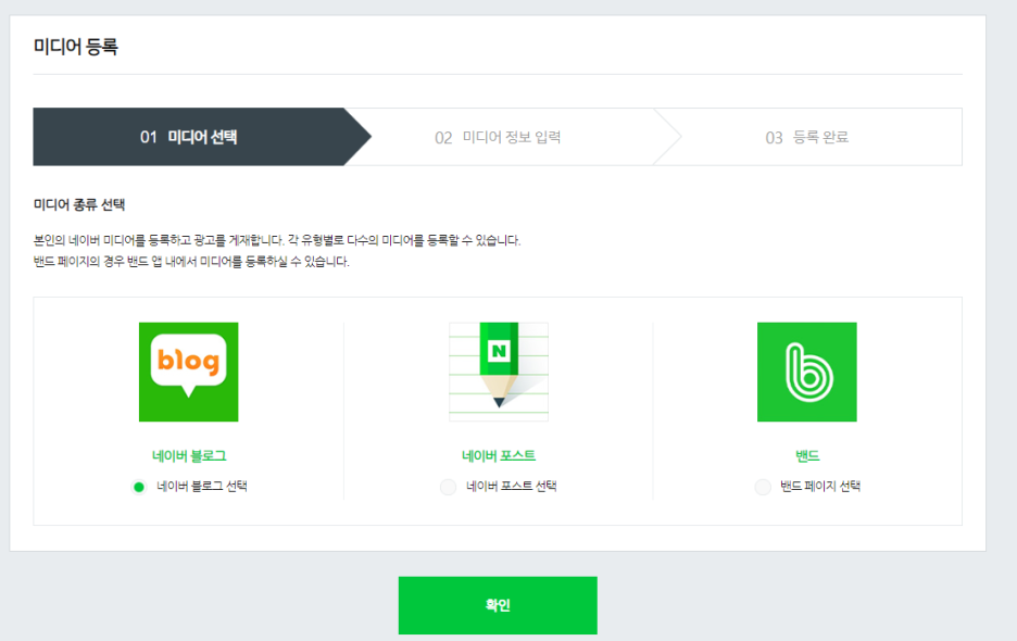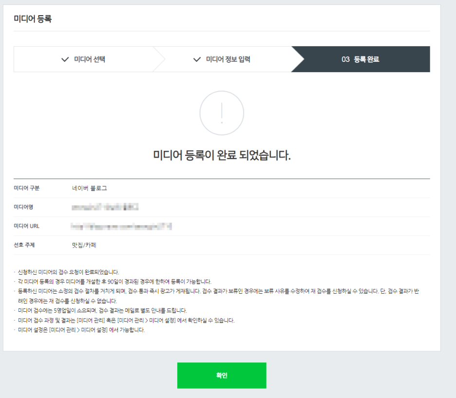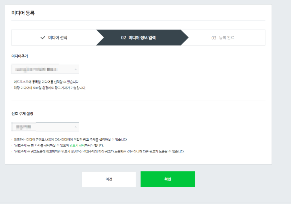 - 블로그, 웹사이트 등 광고를 게재할 미디어 정보 입력