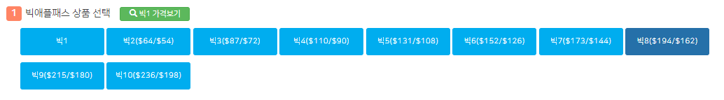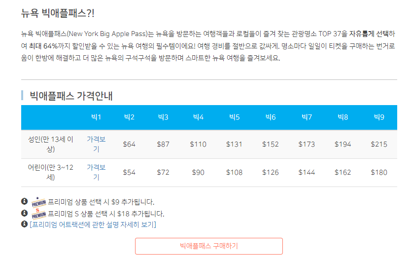 2. 원하는 빅애플패스를 선택 뒤 구매하기를 클릭합니다.