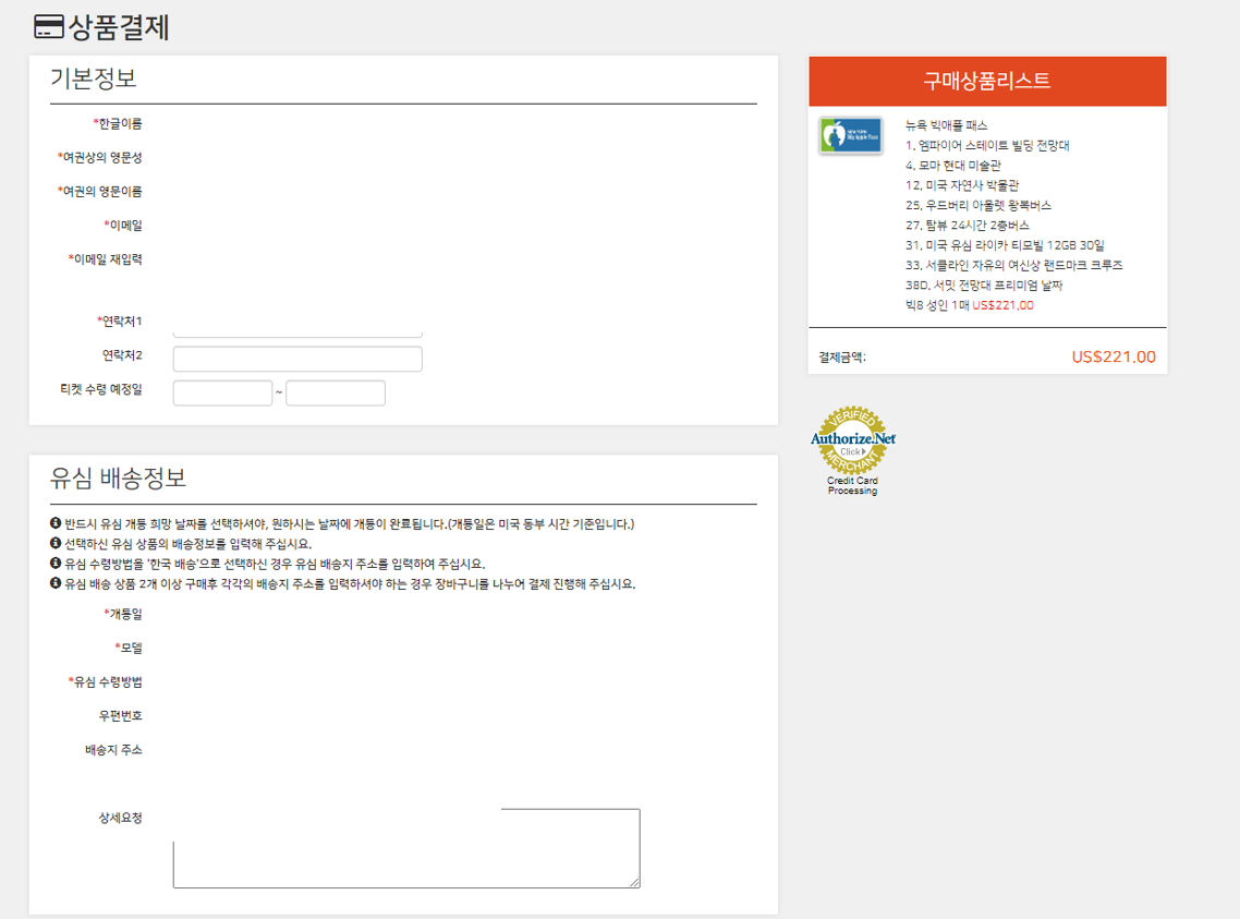 5. 기본정보 및 배송정보 그리고 카드정보를 입력합니다