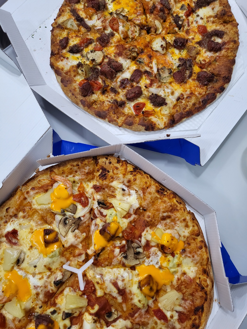 도미노피자에서 가낭 인기가 많은 와일드 와일드 웨스트 스테이크 피자를 주문해 봤습니다. 또한 도미노 피자에서 새롭게 만든 치즈 크레이프 샌드 피자도 같이 주문해봤습니다. 이번에 신상으로 나온 피자인데 치즈의 다양한 맛과 새우의 맛이 좋았습니다. 도미노피자에서 피자를 주문하실 분이라면 치즈 크레이프 샌드 피자도 주문해 보시길 권장드립니다. 특히 도우가 얇아서 간단히 먹기에 좋았고, 피크닉이나 나들이를 갔을 때도 드시기 좋은 피자인 것 같습니다. 치즈 크레이프 샌드 피자는 라지 사이즈가 34,900원입니다. 치즈 크레이프 샌드 피자 미디엄 사이즈는 29,000원입니다. 와일드 와일드 웨스트 스테이크 피자 라지 사이즈는 33,900원입니다. 와일드 와일드 웨스트 스테이크 피자 미디움 사이즈는 28,000원입니다. 도미노피자는 맛이 좋은 반면에 금액이 좀 있어 할인을 잘 이용하면 좋습니다. 매장별 할인 정책과 할인률이 다를 수 있기 때문에 홈페이즈를 방문하여 주문하셔도 좋습니다.