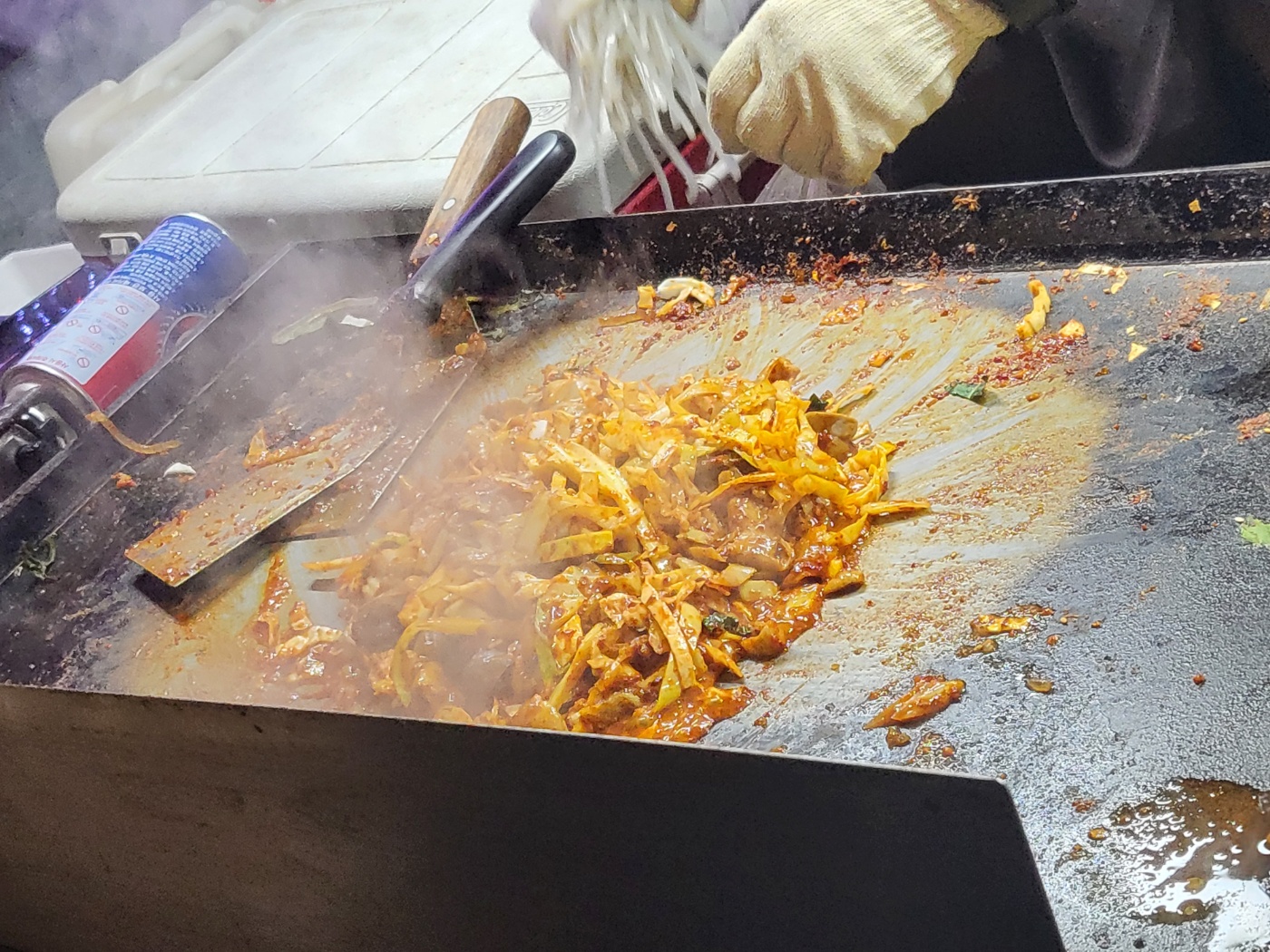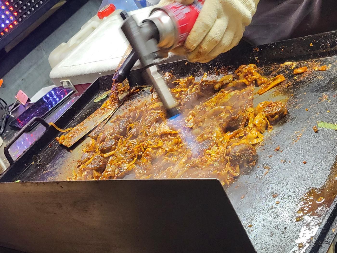 양배추와 곱창 그리고 순대를 볶아주십니다. 그러다가 어느 정도 익으면 당면도 같이 볶아주세요. 들깻가루도 아주 많이 넣어주셔서 맛이 좋았습니다. 그리고 불향을 위해 토치로 직접 달궈주시는데 보기 좋았었습니다.