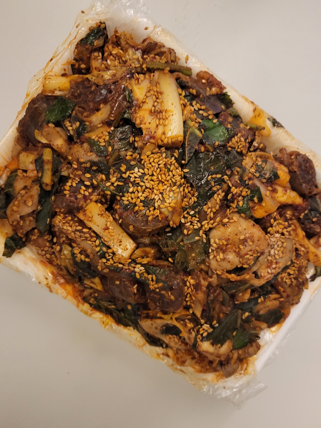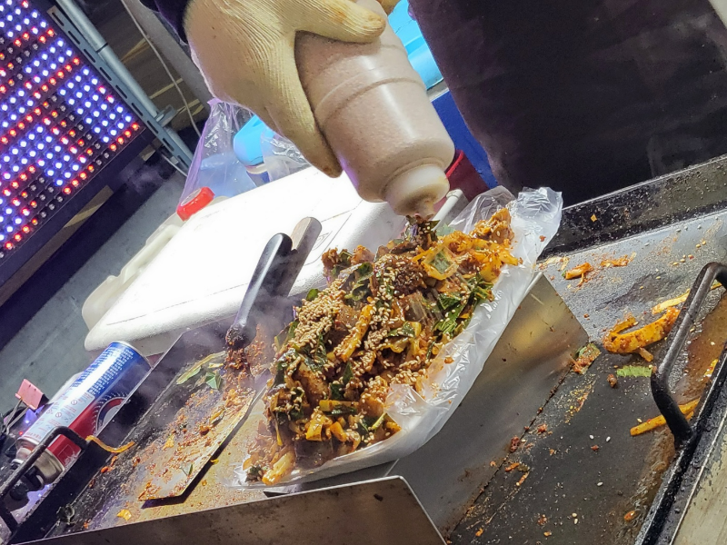 집에 와서 포장해서 먹으려니 소주 안주로 최고였습니다. 야채도 달달하게 맛있게 볶아졌고, 순대랑 곱창이랑 같이 먹으니 아주 좋았었습니다. 저는 금요일 저녁에 포장했었는데, 사장님의 방문 날짜는 전화번호로 연락드려보면 빠르게 확인할 수 있을 것 같았습니다.