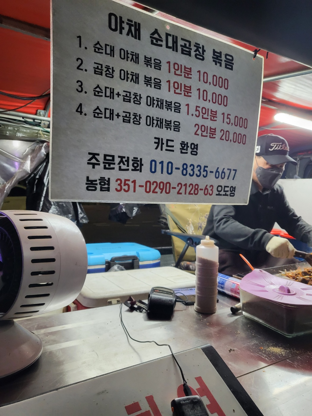 야채 순대 곱창 볶음이며 금액은 아래와 같습니다. 전화로 주문도 가능하고, 카드 및 계좌이체로도 계산이 가능해서 편리한 것 같아요!!