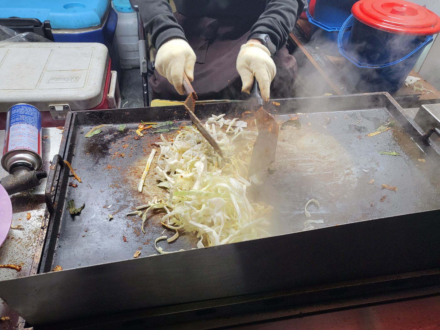 사장님께 3번이요!! 이렇게 말씀드리면 양배추부터 먼저 볶아주십니다.