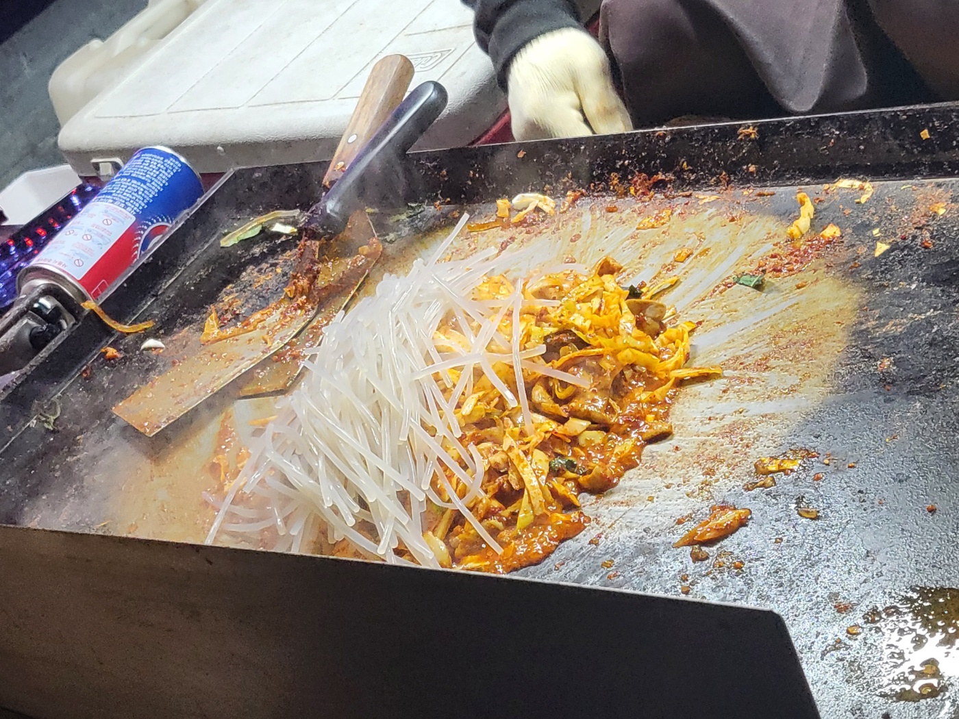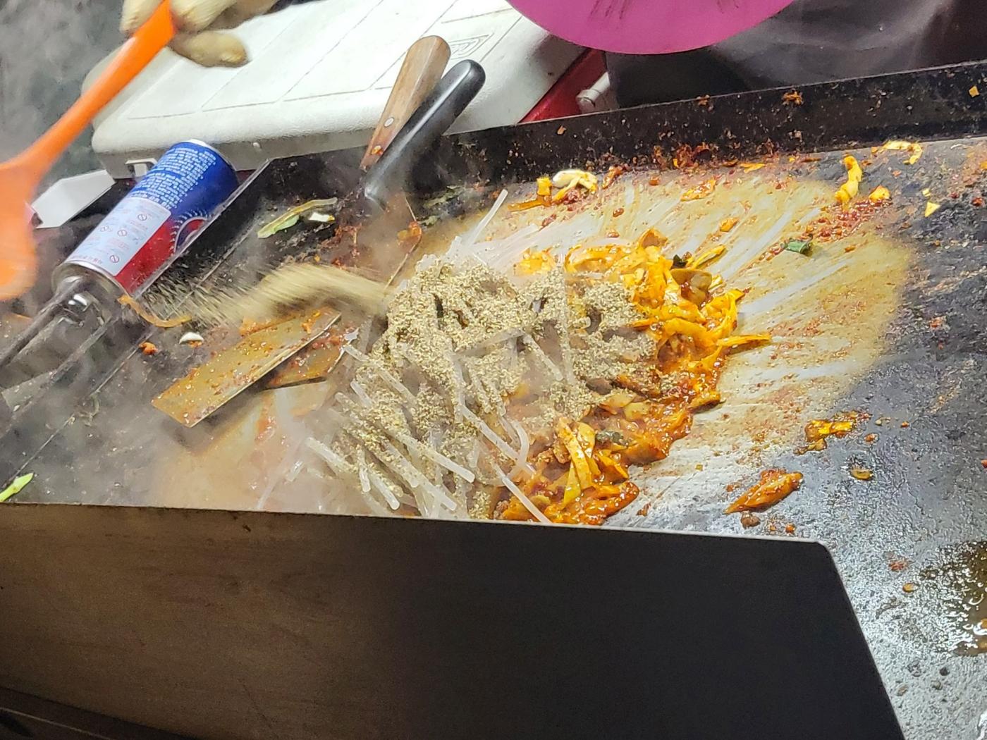 양배추와 곱창 그리고 순대를 볶아주십니다. 그러다가 어느 정도 익으면 당면도 같이 볶아주세요. 들깻가루도 아주 많이 넣어주셔서 맛이 좋았습니다. 그리고 불향을 위해 토치로 직접 달궈주시는데 보기 좋았었습니다.