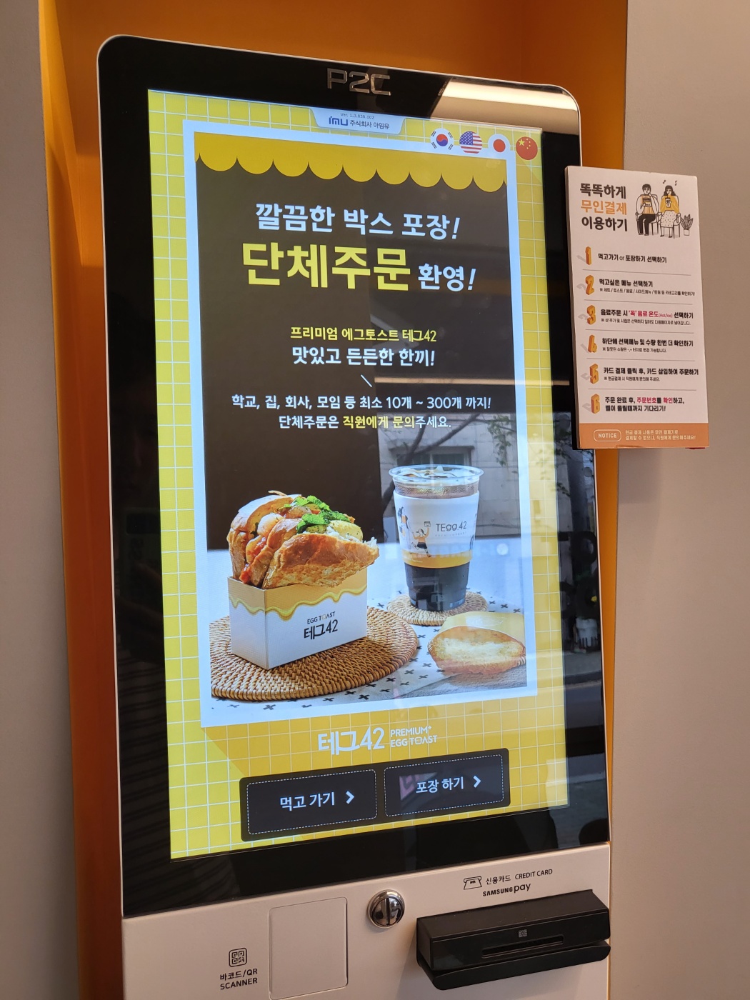 테그42에서 주문을 하면, 먹기 좋게 포장을 해줘서 아주 좋은 것 같습니다. 학교, 집, 회사, 모임 등 단체주문도 가능하여 행사가 있을 경우 이용하셔도 좋을 것 같습니다. 포장도 금방 되고, 배달로도 쉽게 맛을 보실 수 있으실 것 같습니다. 포장을 해도 따뜻한 샌드위치를 바로 먹을 수 있다는 게 상당히 좋았습니다. 배달비가 아까운 분들은 직적 방문포장을 해도 좋은데요. 매장이 새로 개업하고 깔끔해서 그런지 가게 앞만 지나가도 향긋한 버터향이 가득하여 기분이 좋았습니다.