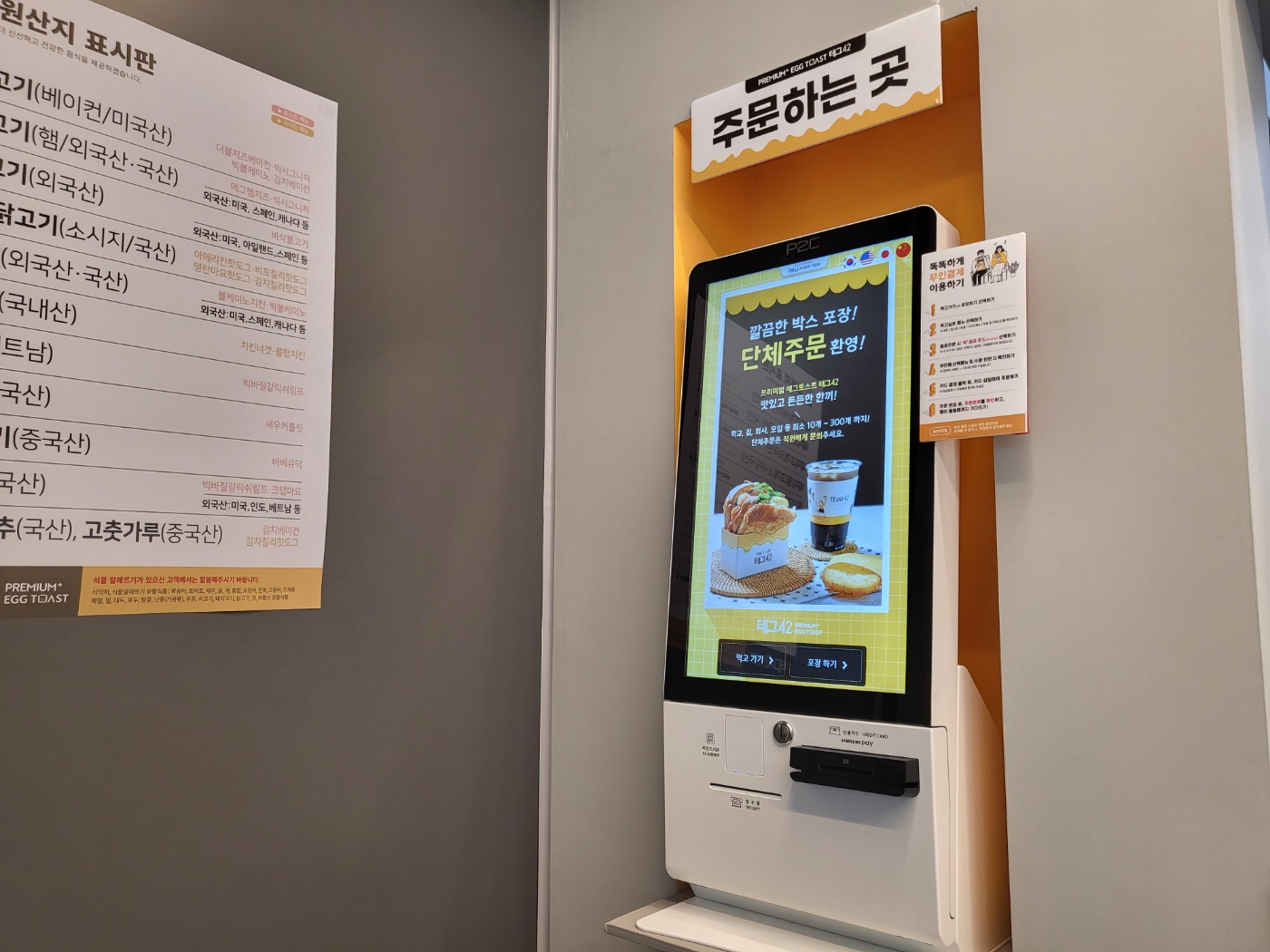 테그42에서 주문을 하면, 먹기 좋게 포장을 해줘서 아주 좋은 것 같습니다. 학교, 집, 회사, 모임 등 단체주문도 가능하여 행사가 있을 경우 이용하셔도 좋을 것 같습니다. 포장도 금방 되고, 배달로도 쉽게 맛을 보실 수 있으실 것 같습니다. 포장을 해도 따뜻한 샌드위치를 바로 먹을 수 있다는 게 상당히 좋았습니다. 배달비가 아까운 분들은 직적 방문포장을 해도 좋은데요. 매장이 새로 개업하고 깔끔해서 그런지 가게 앞만 지나가도 향긋한 버터향이 가득하여 기분이 좋았습니다.