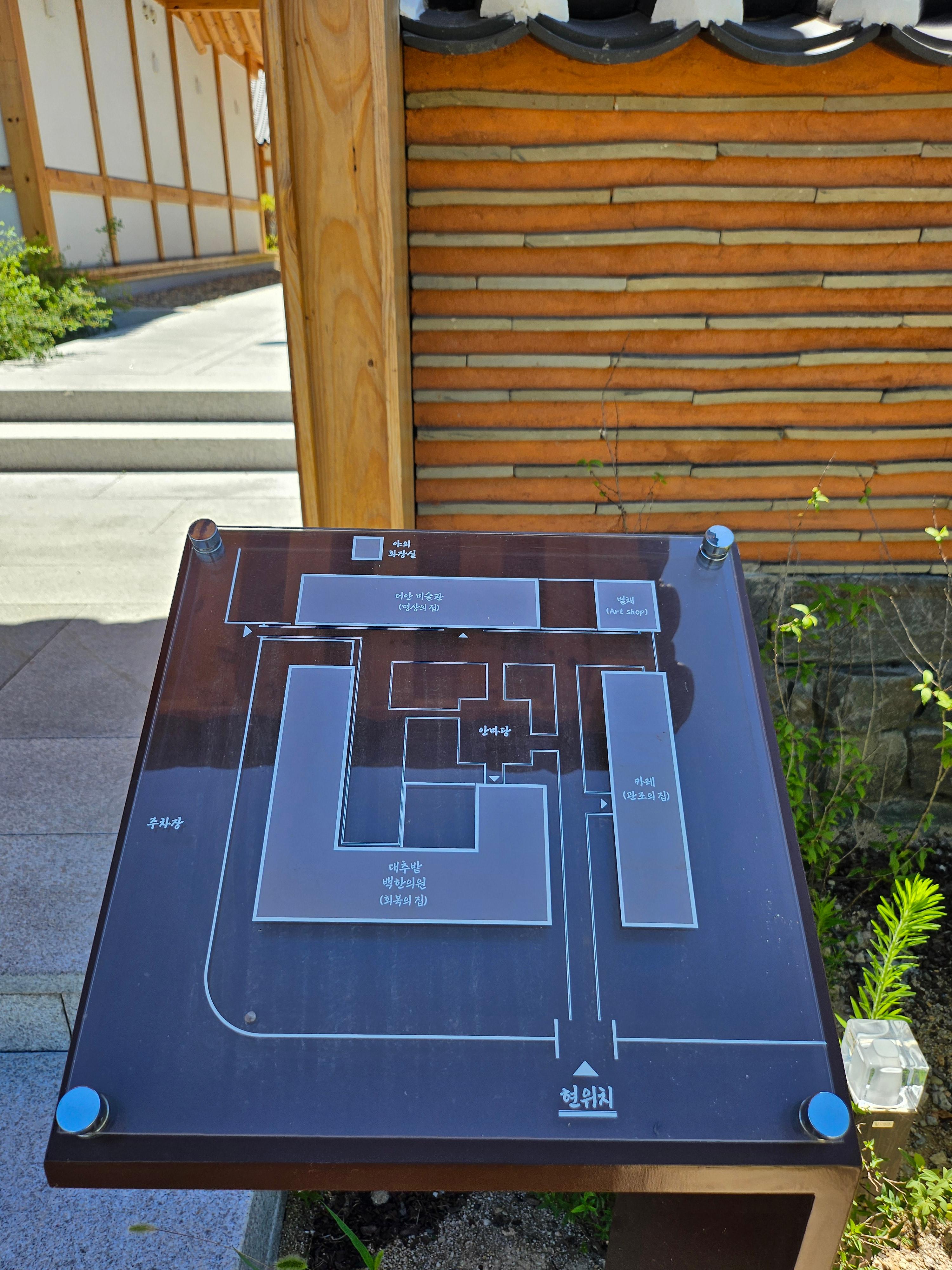 건물 구성은 대추밭백한의원(회복의 집), 카페(관조의 집), 안마당, 더안 미술관(명상의 집), 별채(Art Shop)으로 구성되어 있습니다.