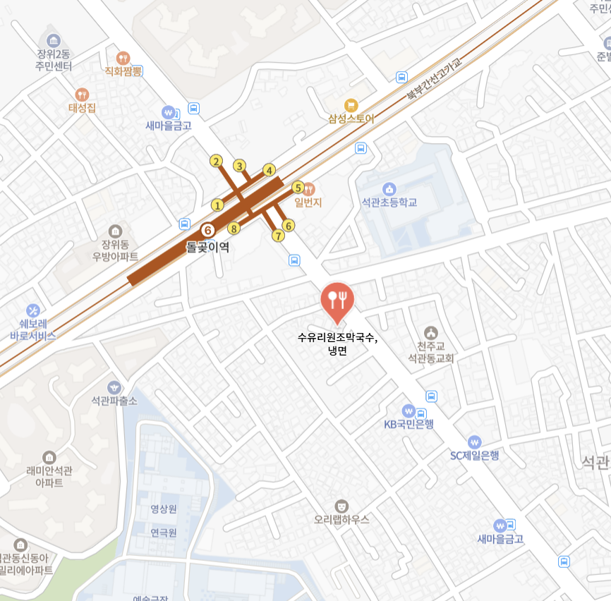 안녕하세요 알두쓸모입니다. 오늘은 6호선 돌곶이역에 위치한 수유리 원조 막국수 냉면 가게에 방문한 후기에 대해 글을 작성해 보도록 하겠습니다. 수유리 원조 막국수 냉면은 돌곶이역 7번 출구로 나오시면 쉽게 가실 수 있습니다. 근처에는 석관초등학교, 이문 초등학교, 한국예술종합학교 석관동캠퍼스도 있습니다. 초등학교, 대학교 등이 있어 많은 사람들이 방문하기에 좋은 곳 같습니다. 장위자이 레디언트, 래미안 석관 아파트, 삼익 아파트, 래미안 라그란데 아파트 등이 근처에 있습니다. 매장은 새로 오픈한 듯하여 매우 깔끔했고, 맛도 좋아서 후기를 남깁니다.