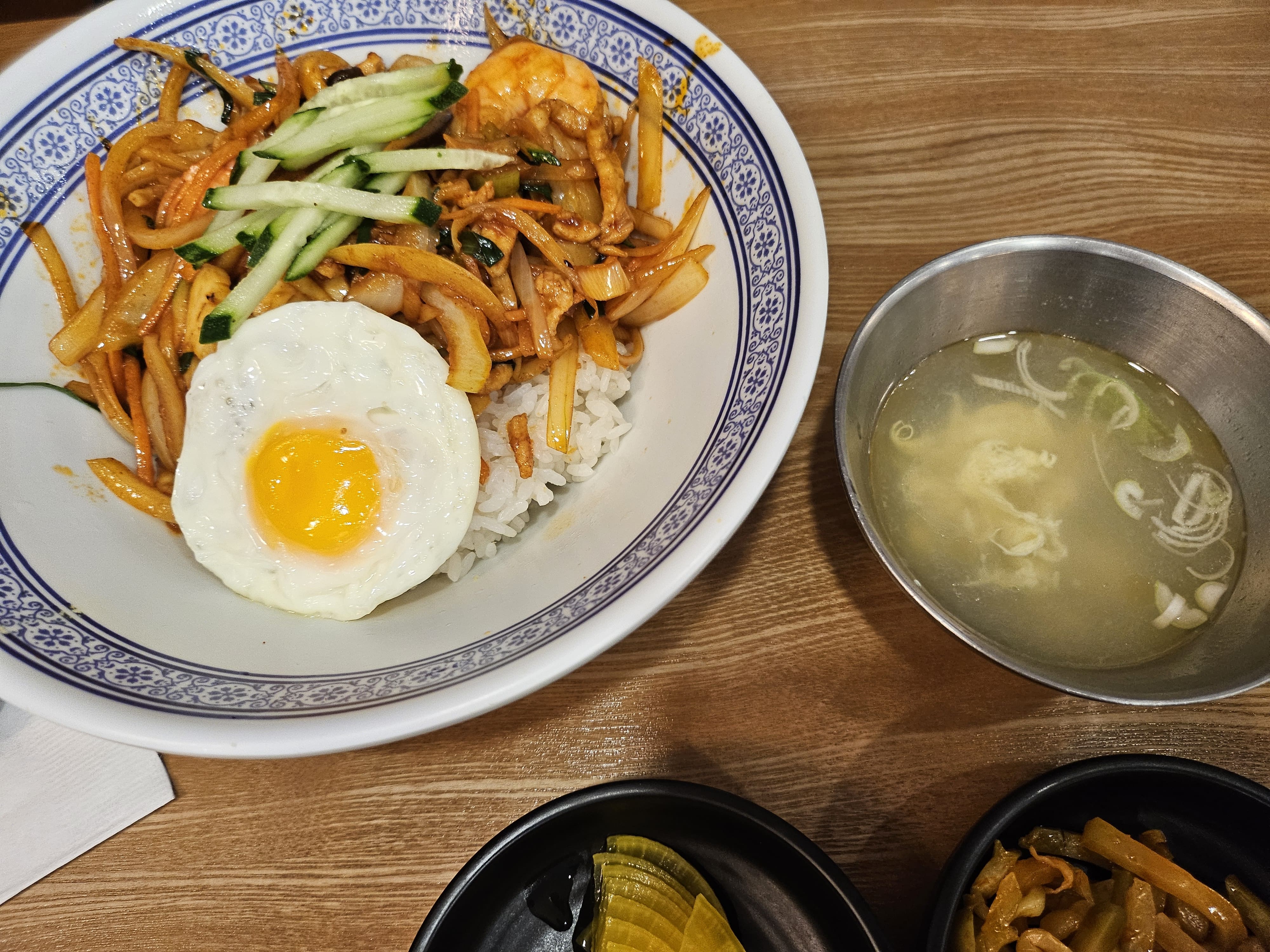 매란방 대구식 중화 비빔밥은 보통보다 순하게 주문하였습니다. 그래서 음식의 매운 느낌이 보다 덜 한 것 같습니다. 해물도 많고 고기도 많이 들어가 있고 짜장면, 짬뽕 말고 새로운 음식을 드시고 싶은 분이 계신다면, 추천드립니다.