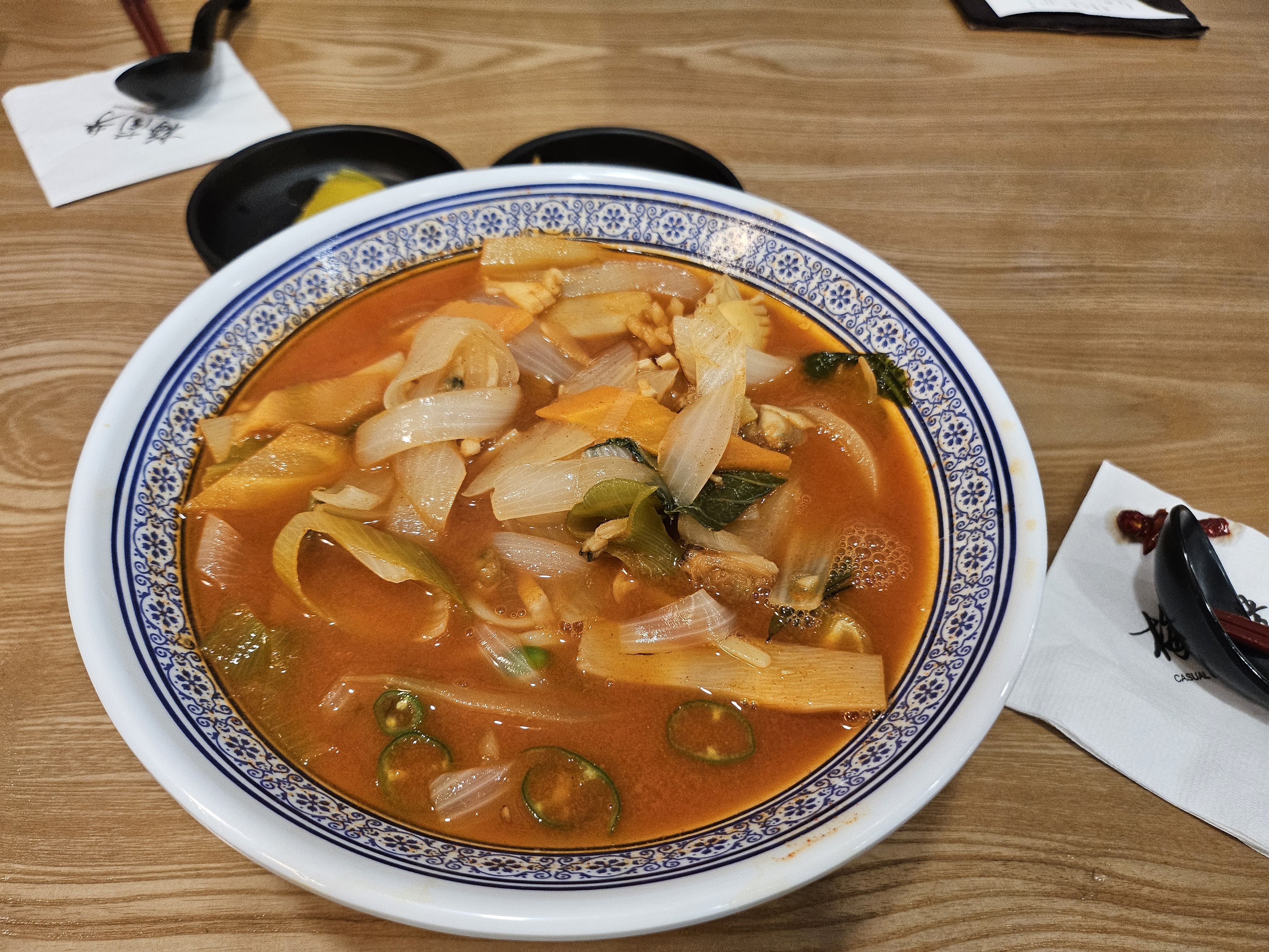 제가 매란방 청량리역점 방문하여 주문한 음식은 매란방 짬뽕과 매란방 대구식 중화 비빔밥입니다. 짬뽕은 보통보다 더 맵게 해달라고 요청을 드렸고, 매운 요청을 하니 청양고추가 추가된 것으로 보입니다.