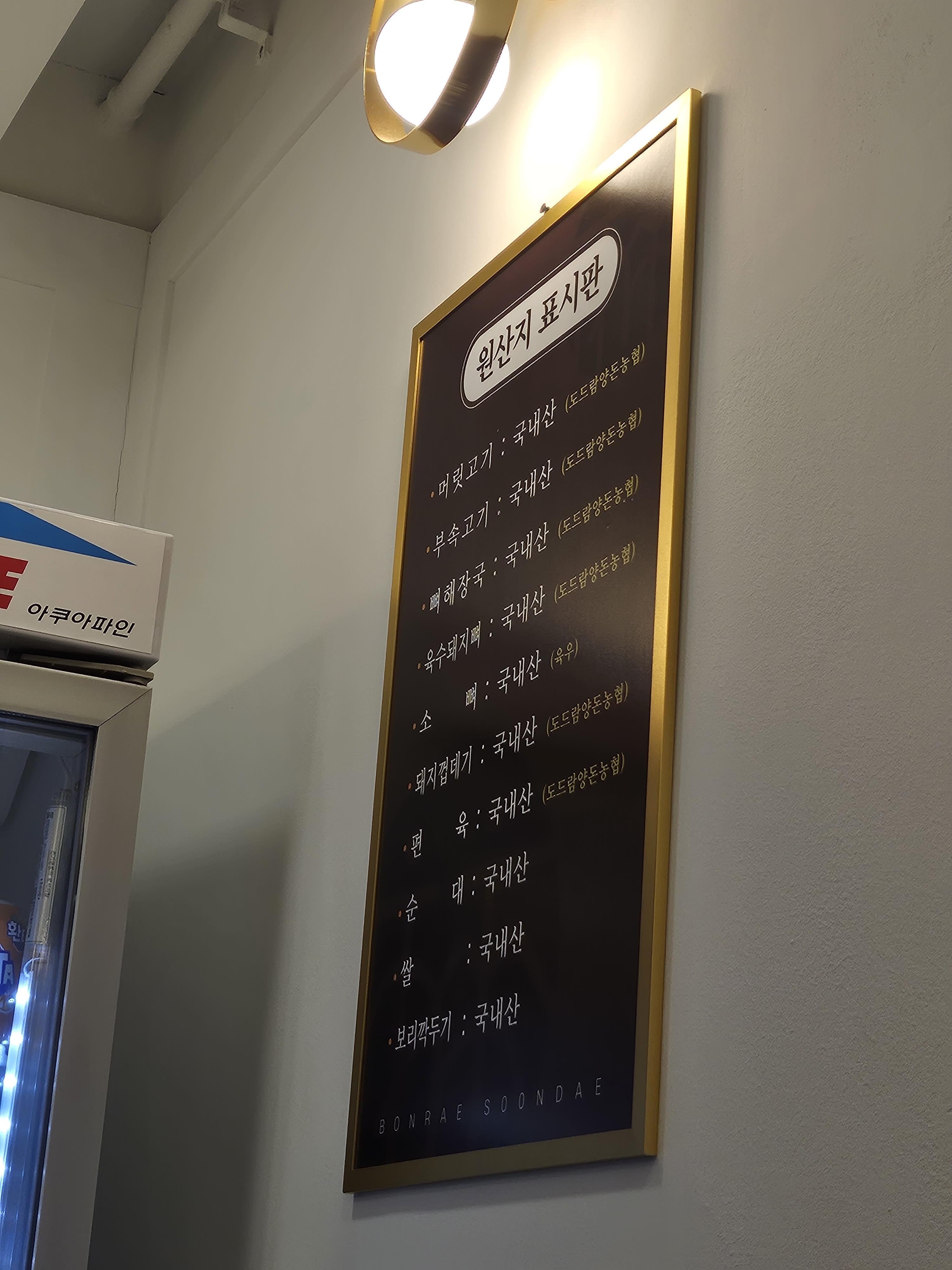 모든 재료가 국내산임을 알 수 있습니다. 음식에 대한 신뢰도 올라가고 맛도 좋아서, 방문했을 때 아주 좋았습니다.