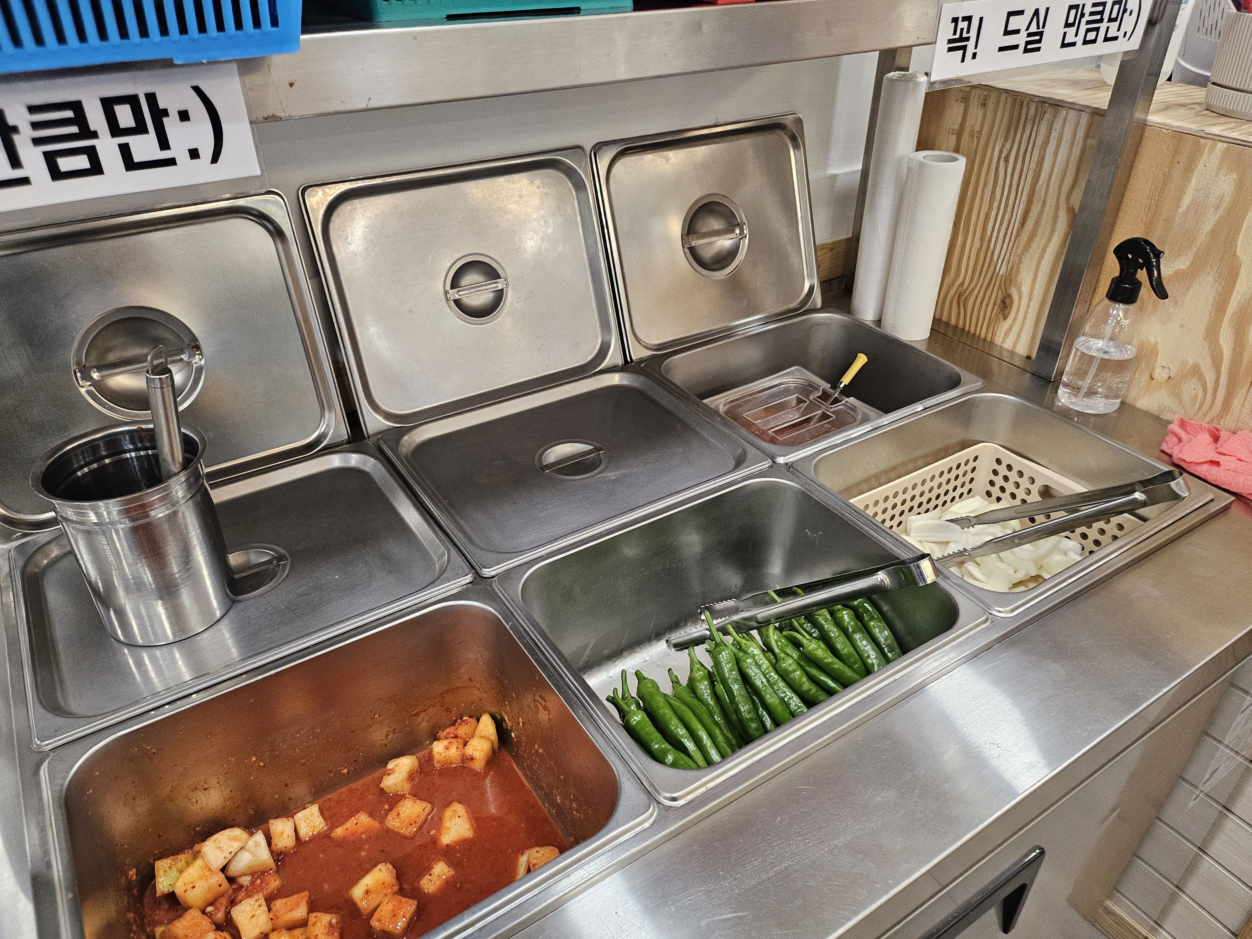 보리깍두기, 청양고추, 양파는 셀프바가 있어서 편하게 이용하실 수 있습니다.