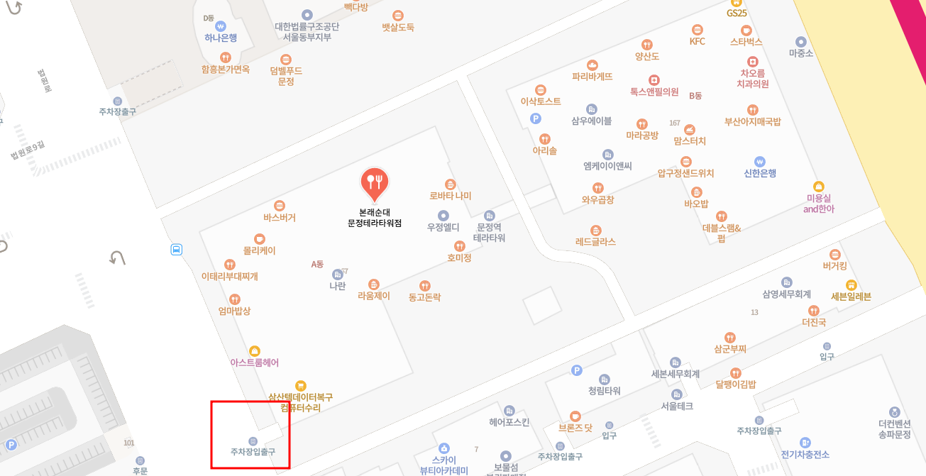주차는 문정역 테라타워에 주차하면 됩니다.