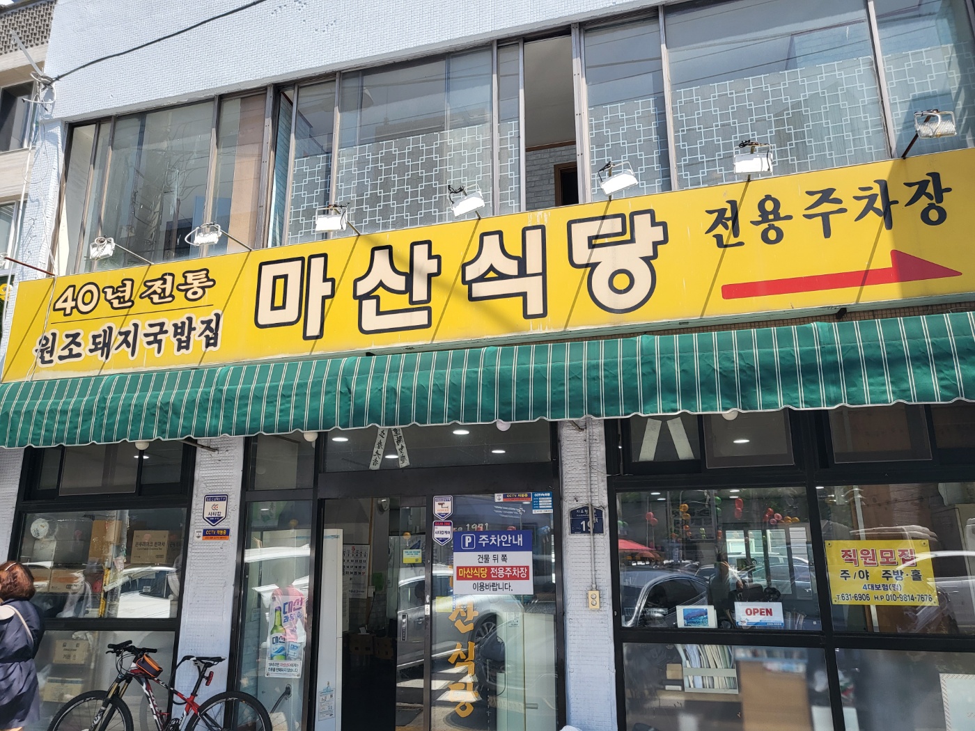 40년 전통의 부산 마산식당 간판입니다. 옛스러움이 가득하며, 원조돼지국밥집입니다. 부산을 방문하신 여행객들이라면, 허영만 식객도 방문한 부산 마산식당에서 가성비 좋은 국밥 한 그릇 하시길 추천드립니다.