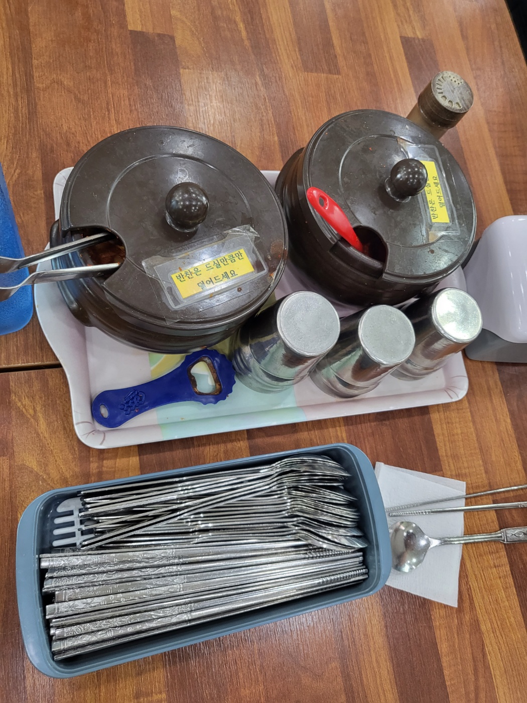 국밥을 보다 얼큰하게 드시고 싶으신 분들은 사장님에게 청양고추를 달라고 하시면, 이렇게 가위와 같이 주십니다. 부산에선 쳥양고추가 아닌 땡초라고 많이 이야기를 해서 부산스럽게 주문을 하시려면 땡초 주세요라고 애기를 해봐도 좋을 것 같습니다. 부산에서 좋은 추억 많이 쌓으시고 행복한 여행이 되셨으면 좋겠습니다. 오늘도 방문해 주셔서 감사합니다. 항상 좋은 일만 있으시면 좋겠습니다.