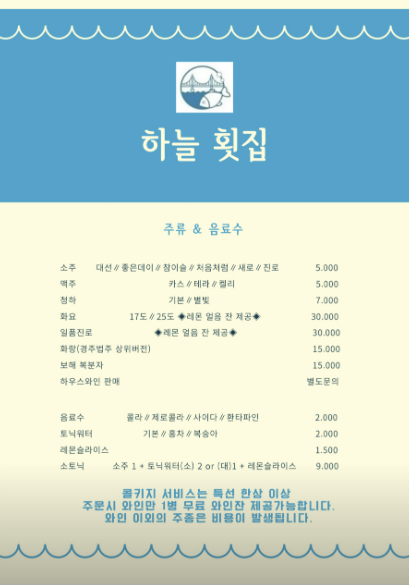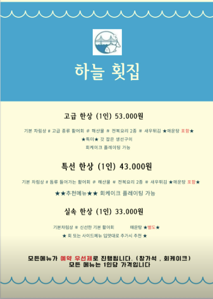 부산 민락수번공원 하늘 횟집 메뉴소개