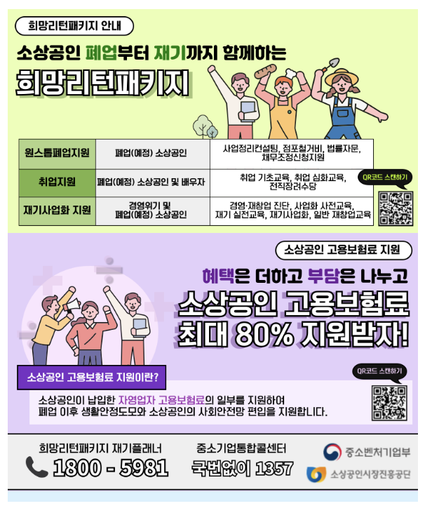 원스톱폐업지원, 취업지원, 재기사업화 지원이 있습니다.