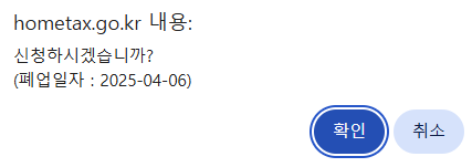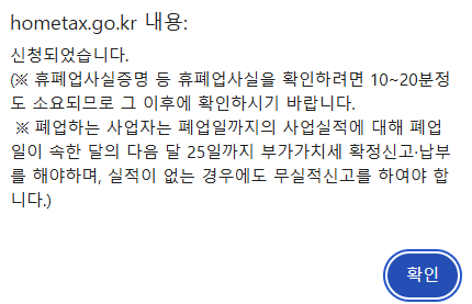 폐업 일자를 확인 후 '확인'을 클릭합니다.