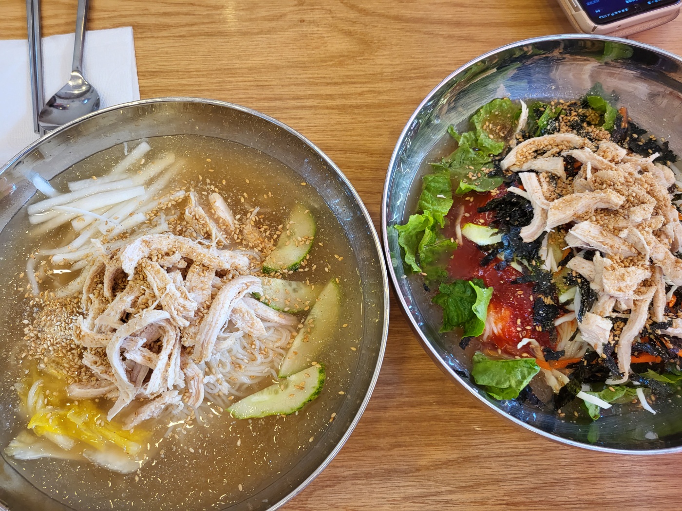 -함경도와 평안도 지방의 전통음식인 초계탕에서 유래한 음식으로 차게 식힌 육수에 식초와 겨자로 간을 하고 살코기를 얹어 먹는다. 초계의 초는 식초를 뜻하며, 계는 평안도의 방언으로 겨자를 뜻한다. 닭고기는 단백질이 풍부하고 소화가 잘되며 따뜻한 성질로 시원한 국수와 궁합이 잘 맞아 여름철 보양음식으로 좋습니다.