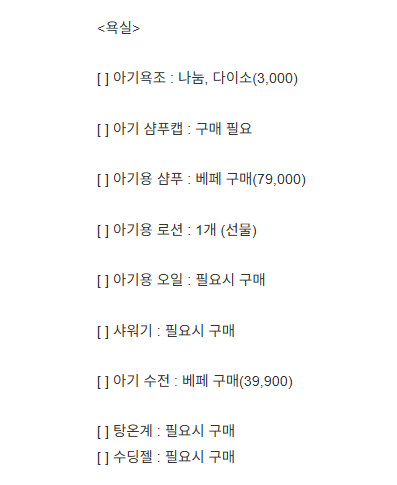 [ ] 아기용 오일 : 필요시 구매