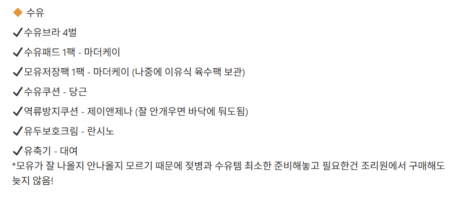 ✔️유축기 - 대여 *모유가 잘 나올지 안나올지 모르기 때문에 젖병과 수유템 최소한 준비해놓고 필요한건 조리원에서 구매해도 늦지 않음!