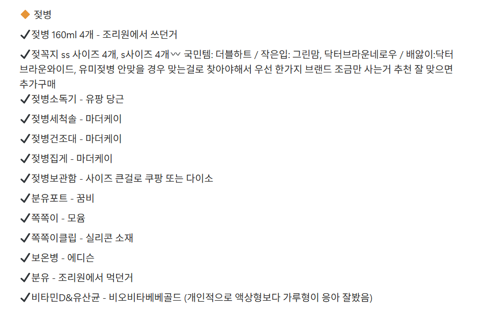 ✔️젖꼭지 ss 사이즈 4개, s사이즈 4개〰️ 국민템: 더블하트 / 작은입: 그린맘, 닥터브라운네로우 / 배앓이:닥터브라운와이드, 유미젖병 안맞을 경우 맞는걸로 찾아야해서 우선 한가지 브랜드 조금만 사는거 추천 잘 맞으면 추가구매 ✔️젖병소독기 - 유팡 당근