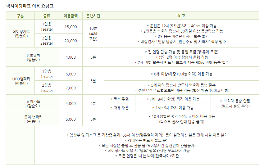 안성팜랜드 이용요금