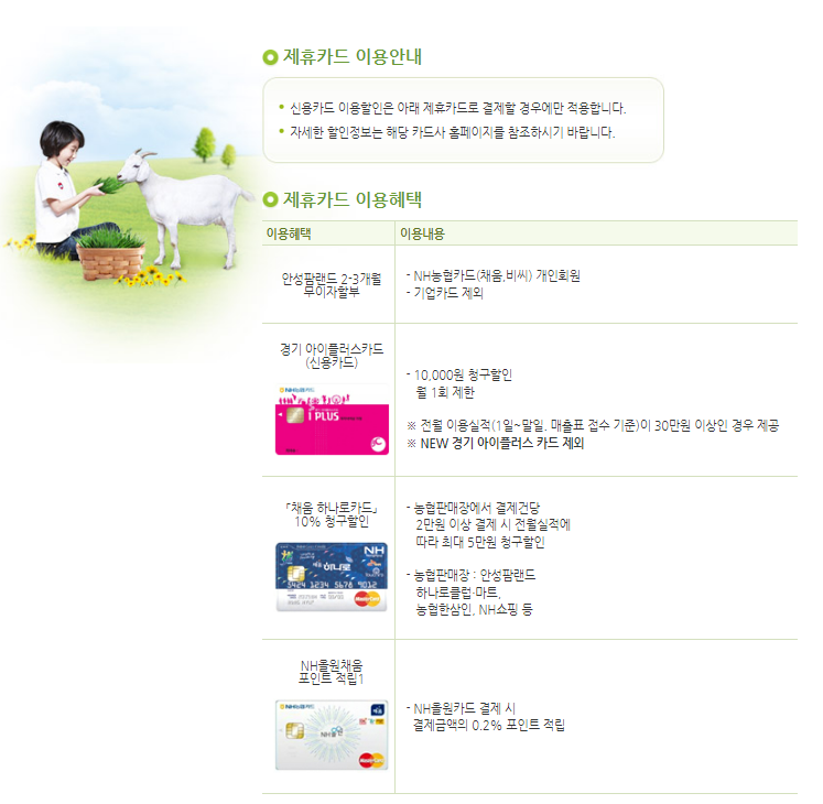 안성팜랜드 제휴카드 할인