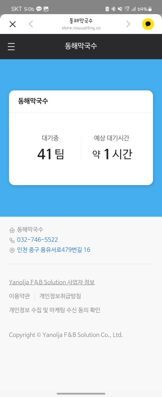 인천 영종도 동해막국수 영업시간 및 전화번호