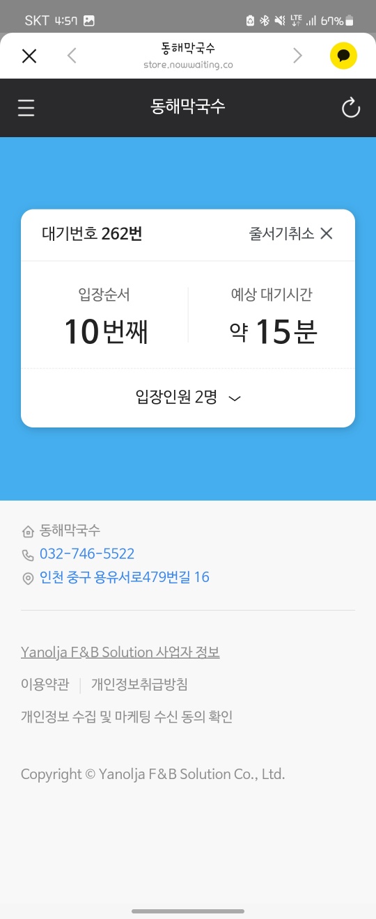 인천 영종도 동해막국수 영업시간 및 전화번호