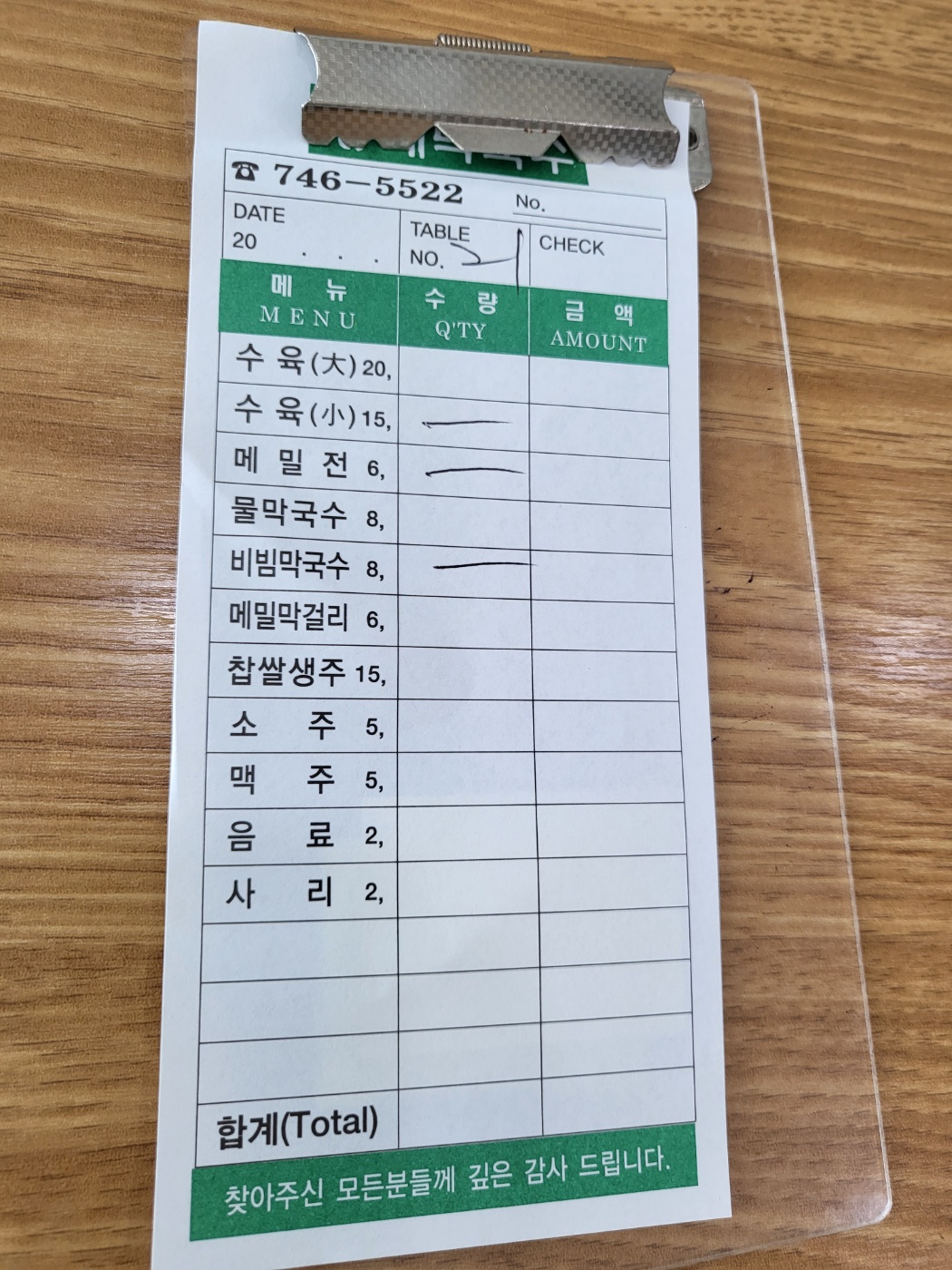 수육 (대) 20,000원