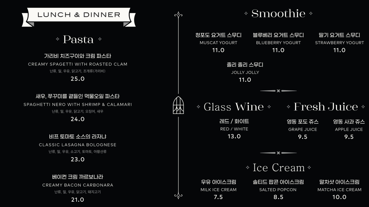 새우, 쭈꾸미를 곁들인 먹물오일 파스타 24000원