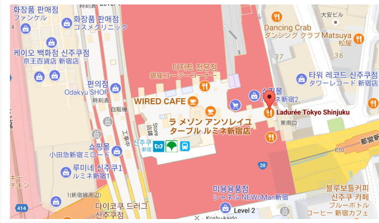 신주쿠역에 위치한 프랑스 마카롱 브랜드 매장입니다. 미츠하가 라뒤레 문 앞에 서서 구글 지도를 켜고 길을 검색하는 모습이 영화네 나왔었습니다.