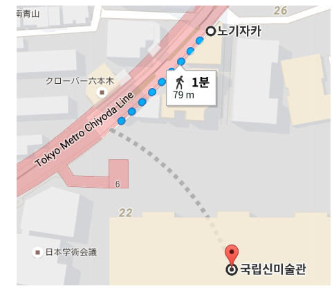 국립신미술관은 타키와 오쿠데라 선배가 데이트한 장소이다. 국립신미술관은 노기자카 역에 있다. 역과 미술관은 지하로 이동할 수 있어서 역에서 바로 방문이 가능하다. 국립신미술관은 2007년에 개관한 현대식 건축물이다. 사방에 거대한 유리 리벽이 있는 것이 특징이다. 신카이 마코토는 이러한 현대적인 건물의 건축적 특징을 잘 살폈다.
