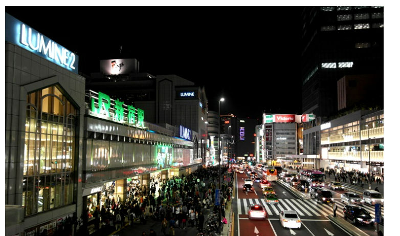 신주쿠역에서 루미네 건물을 봐야합니다. 육교에서 올라가면 사진을 비슷하게 찍을 수 있습니다. 또한 신주쿠는 낮에 모습이 더 이뻐서 낮에 방문하시는 것을 추천드립니다.
