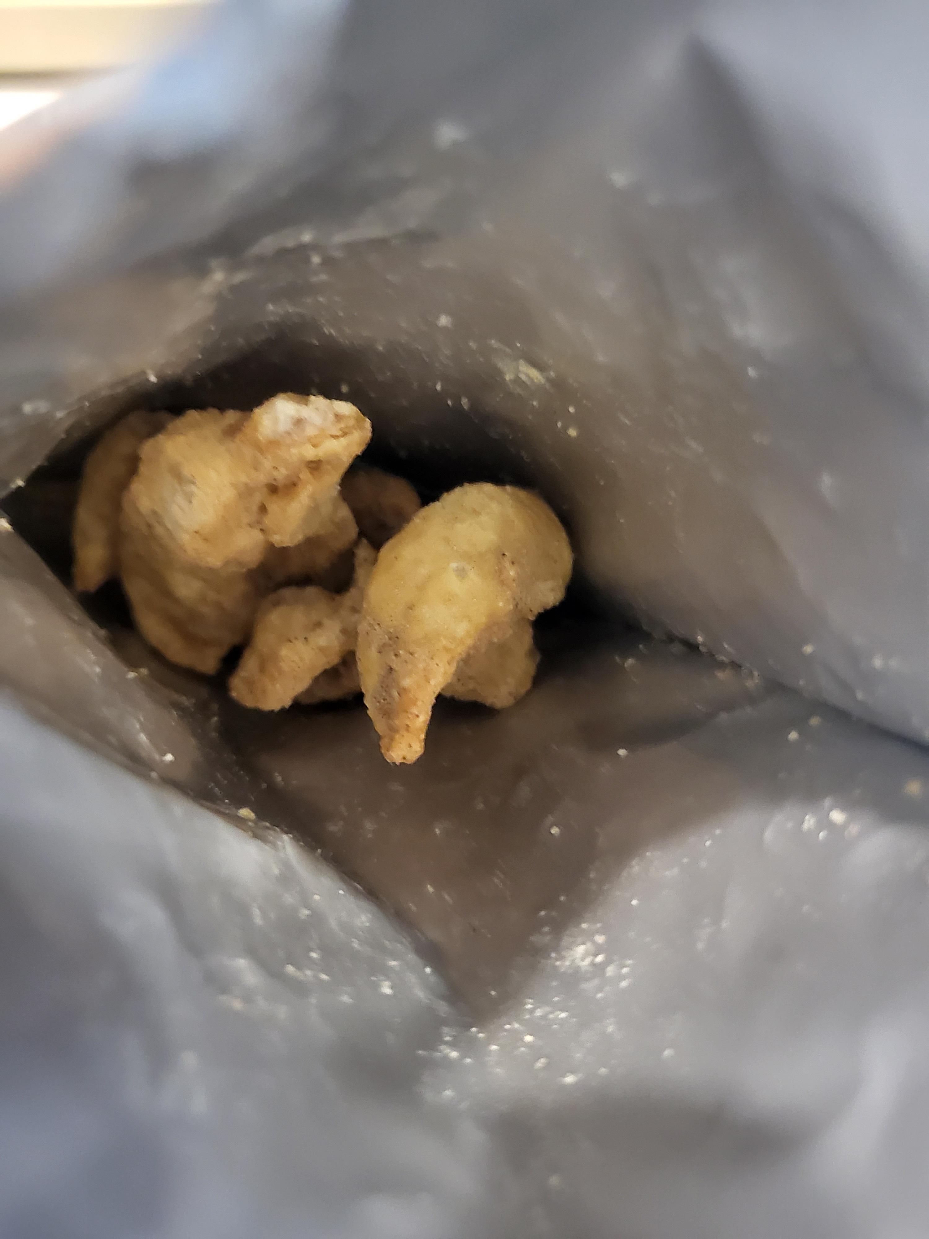 양이 적다고 생각하실 수 있는데 혼자서 먹기 적당했습니다. 과자가 꽤 커서 씹는 맛도 좋았습니다. 짭짤한 맛으로 닭껍질튀김의 식감과 같이 과자 맛이 좋았습니다.