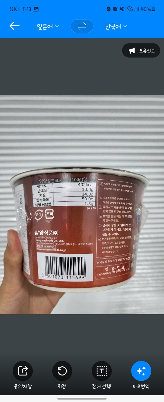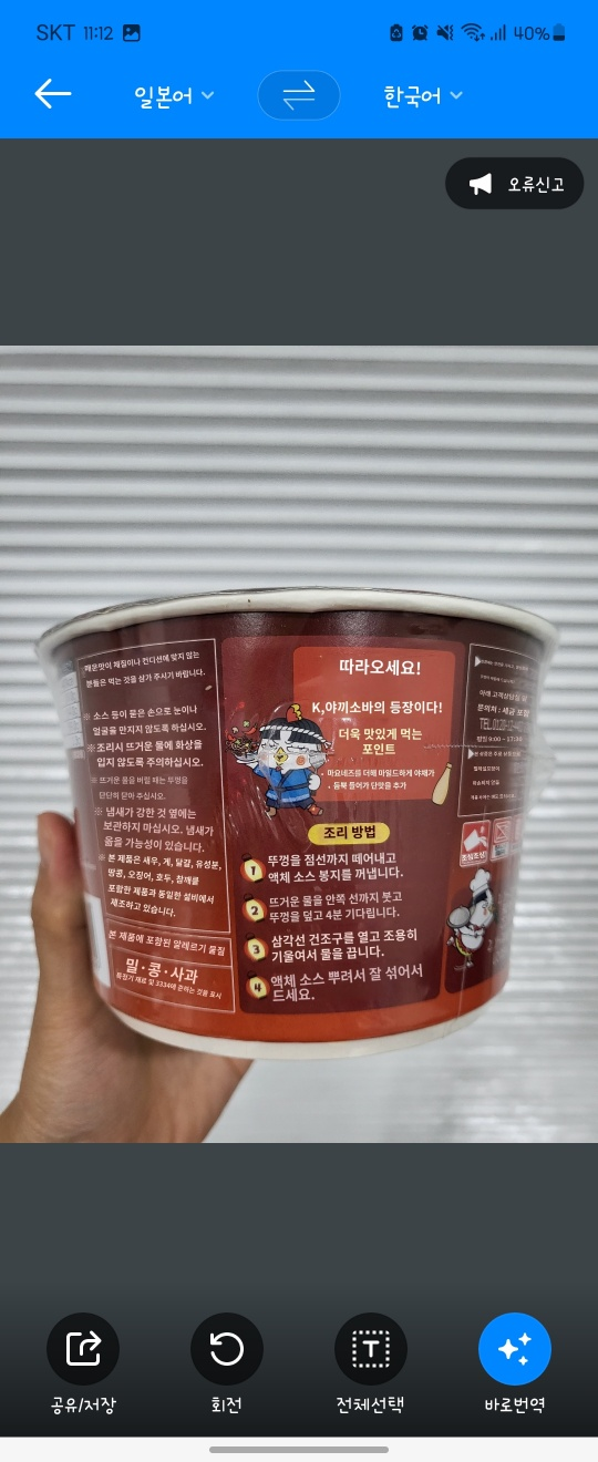 야끼소바 불닭볶음면 성분표 및 성분표 번역